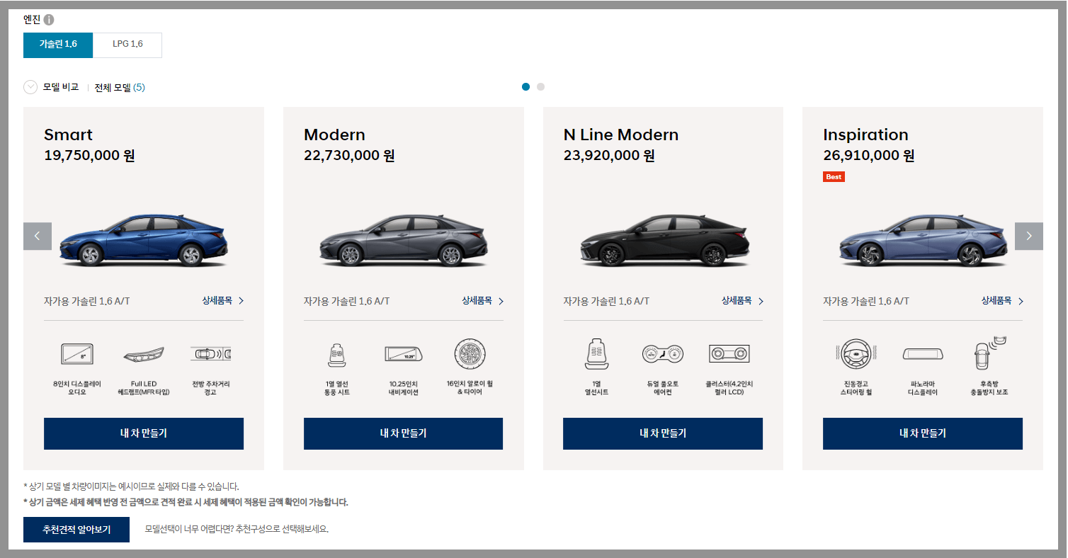 아반떼 인기 모델 추천